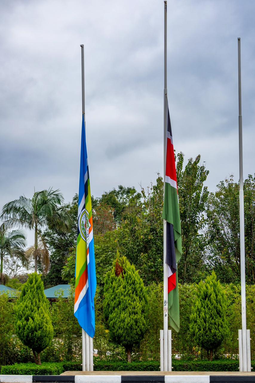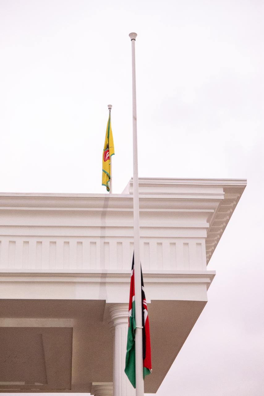 Flags at half-mast at State House, Nairobi in honor of the former Prime Minister Raila Odinga on October 16, 2025.PHOTO/PCS