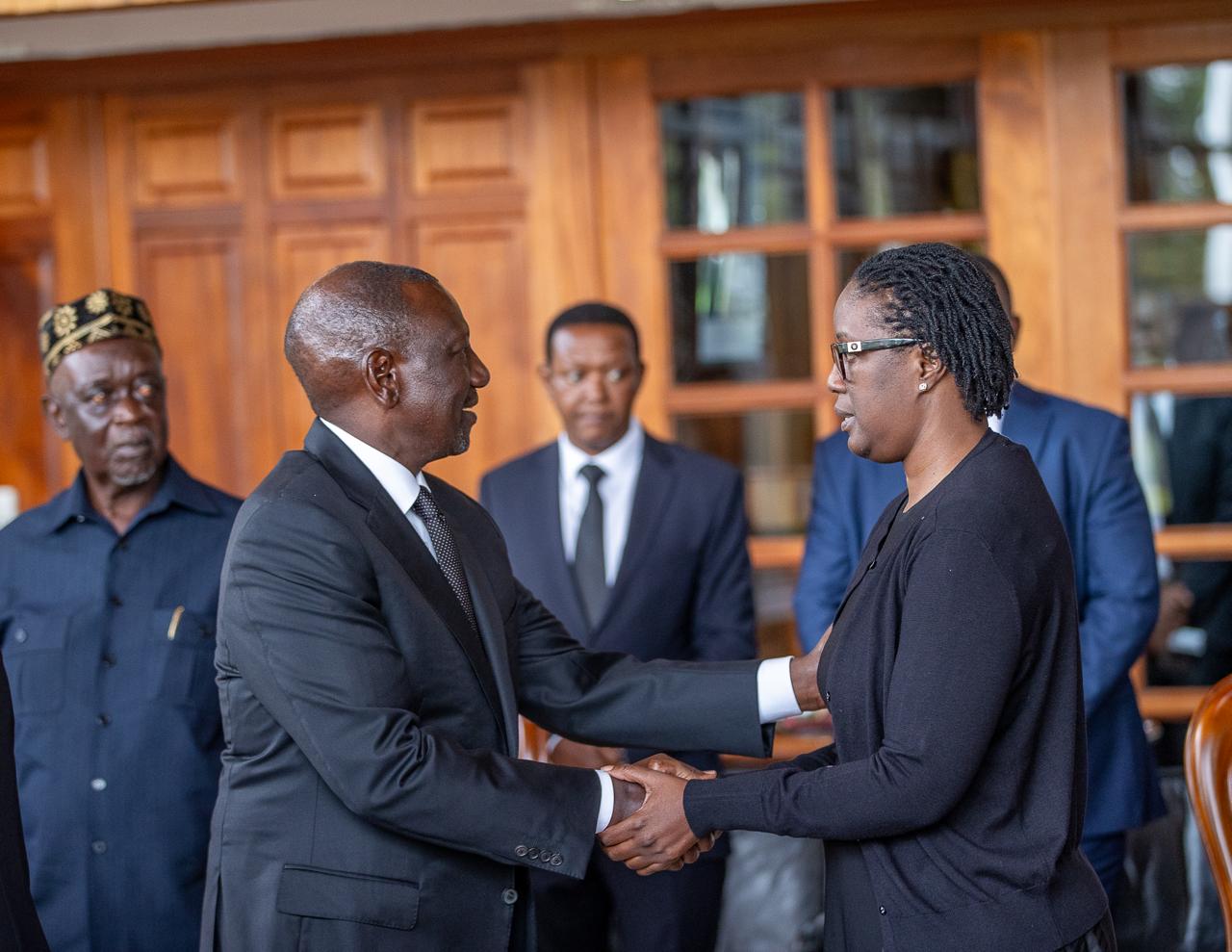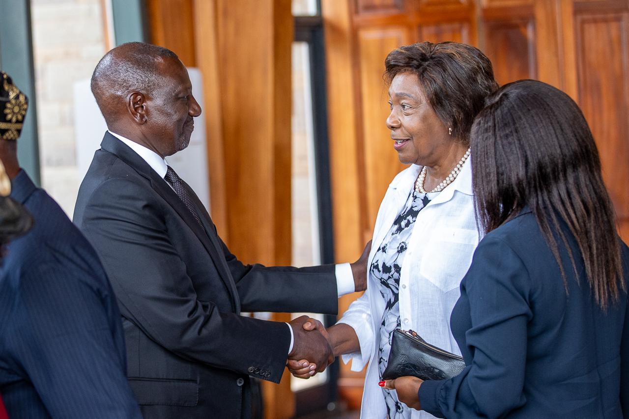 President William Ruto greeting Rosemary Odinga at JKIA as they wait for the arrival of the body of the late Raila Odinga on October 16, 2025.PHOTO/PCS