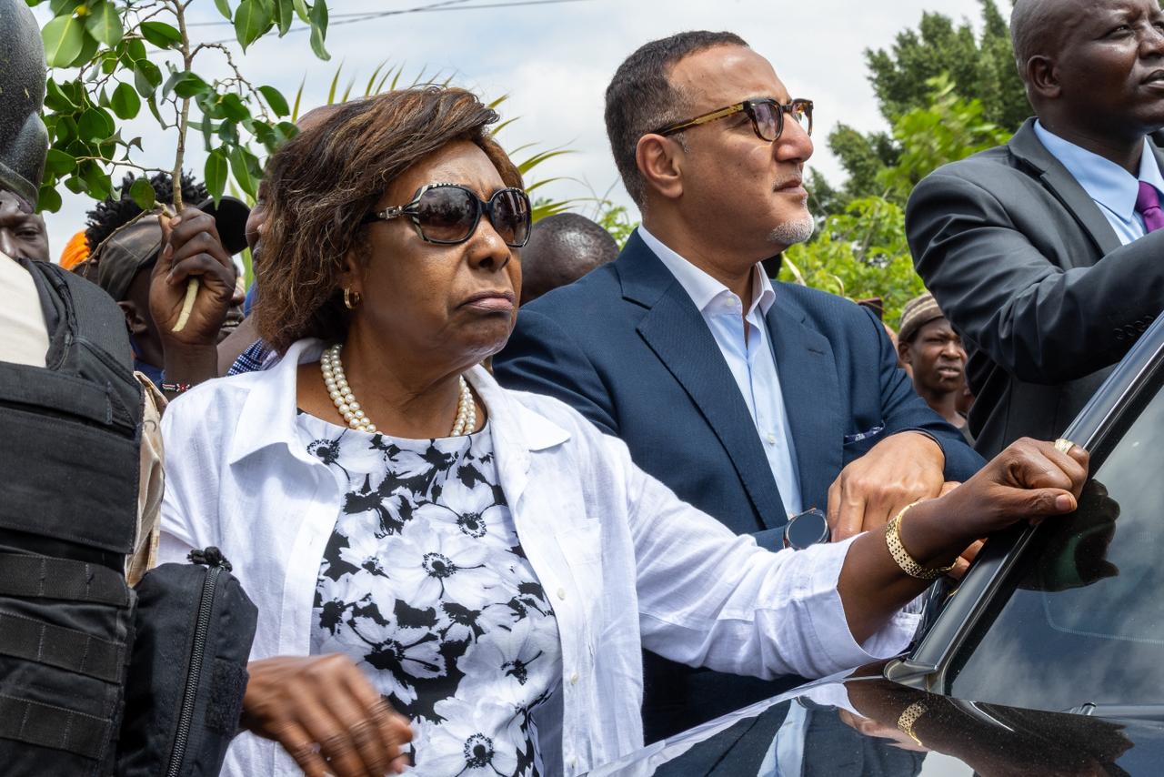 Former Kitui Governor Charity Ngilu and former Cabinet Secretary Najib Balala waiting for the arrival of the body of the late Raila Odinga at the JKIA, Nairobi on October 16, 2025.PHOTO/PCS