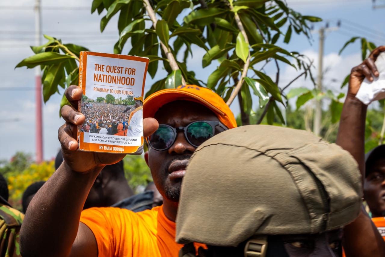 A mourner holding a notebook waiting for the arrival of the body of the late Raila Odinga at the JKIA, Nairobi on October 16, 2025.PHOTO/PCS