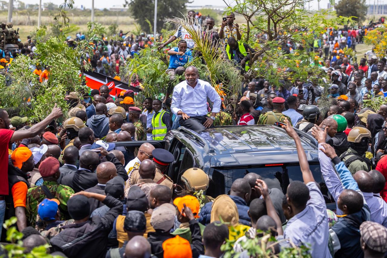 Deputy, Kithure Kindiki in the midst of a crowd as they leave JKIA after the arrival of the body of the late Raila Odinga on October 16, 2025.PHOTO/PCS