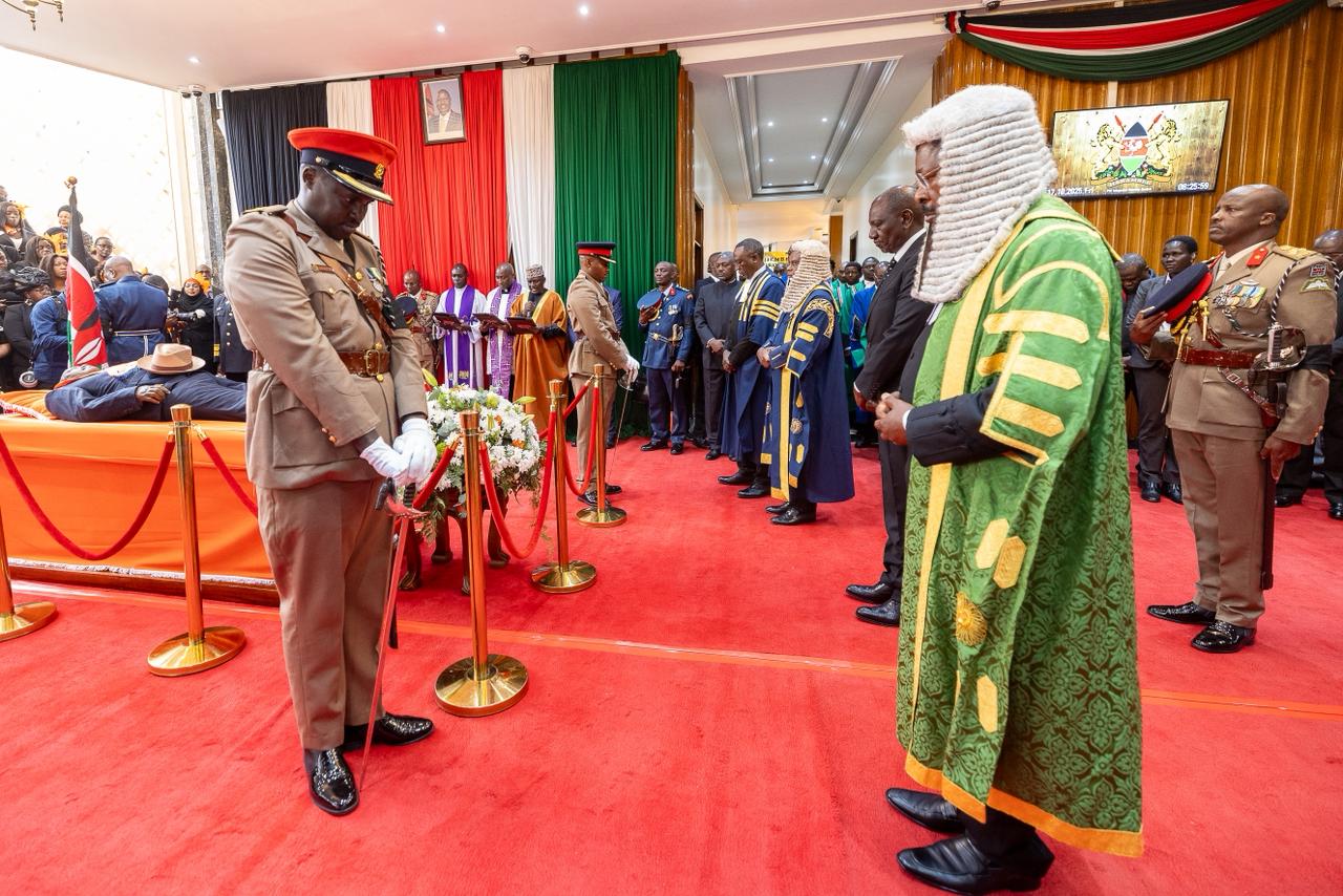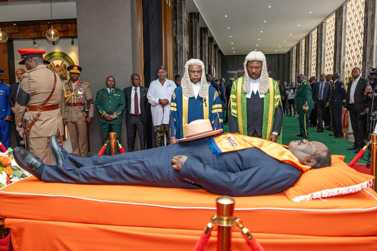 The body of the late Prime Minister Raila Odinga lying in State at Parliament Buildings on October 17, 2025. PHOTO/PCS