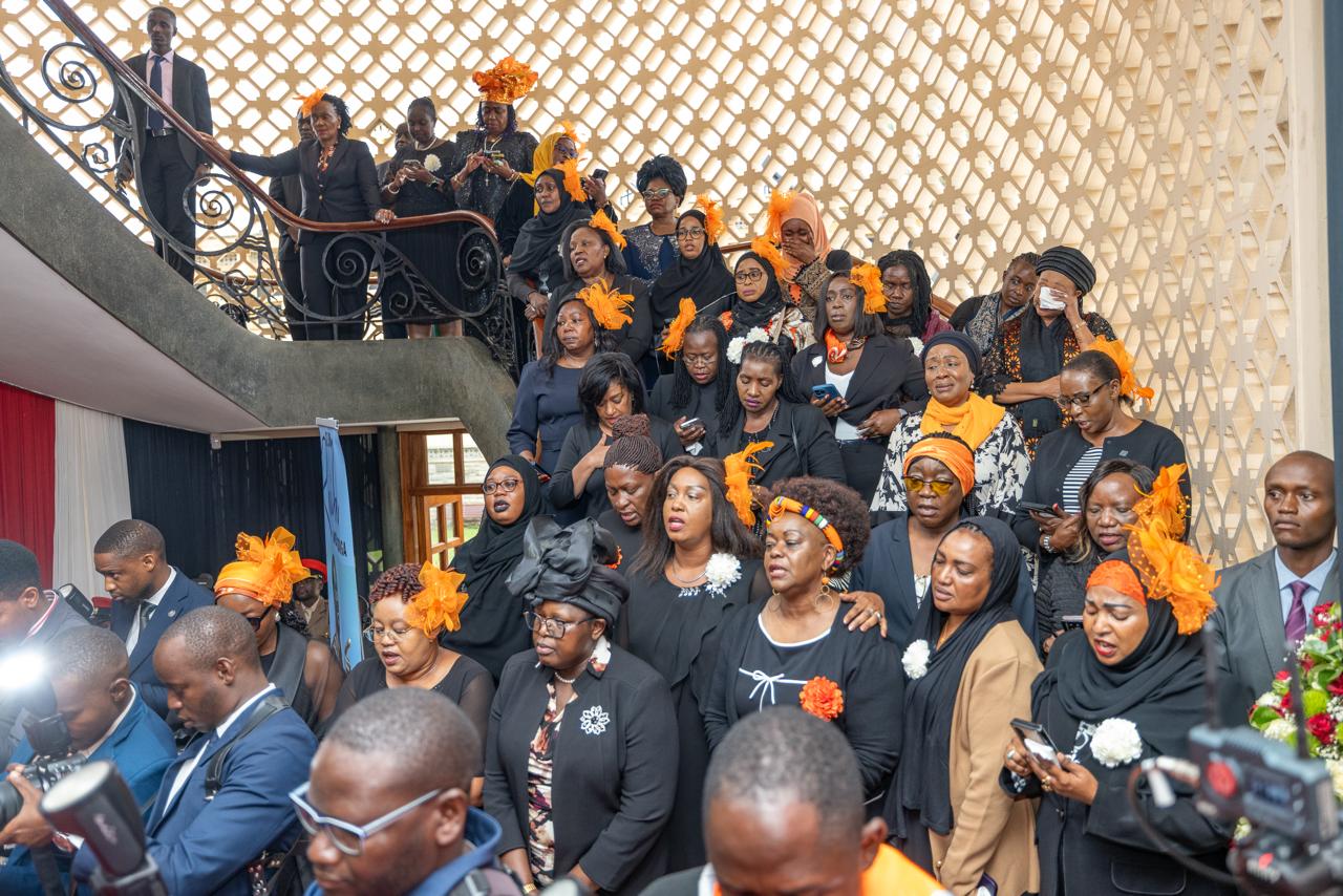Women Caucus of the National Assembly singing during Raila Odinga's body viewing at Parliament Buildings on October 17, 2025. PHOTO/PCS