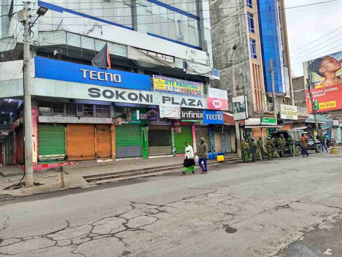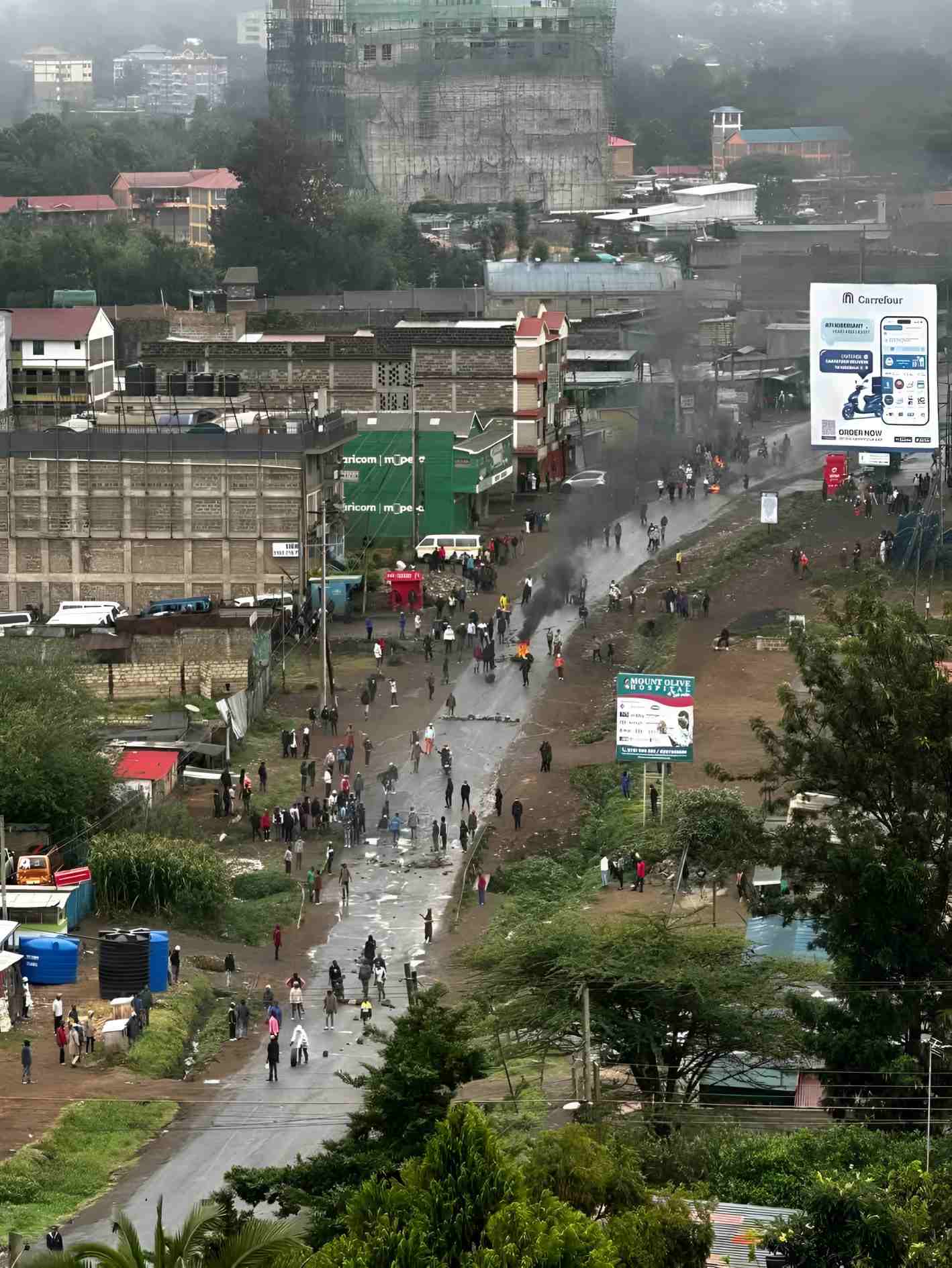 Hundreds of youths engaged police officers in violent confrontations at Kabati area in Kandara Sub-county, Murang’a County, before overpowering them and breaking into businesses.