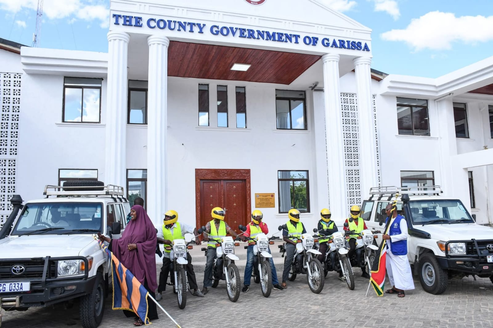 Garissa Governor Nathif Jama flagged off a fleet of vehicles and motorbikes donated by the World Food Programme (WFP) on Friday.